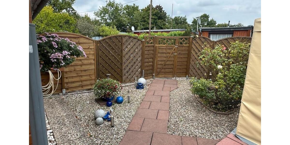 Mit einer Grundstücksgröße von 165 m² erwartet Sie ein pflegeleicht angelegter Garten mit großer Terrasse mit Markise, der ideal für gemütliche Stunden im Freien einlädt. Ein Autostellplatz direkt am Haus sorgt für zusätzlichen Komfort. Für das Grundstück ist ein Pachtvertrag mit dem Camping Arnumer See erforderlich.